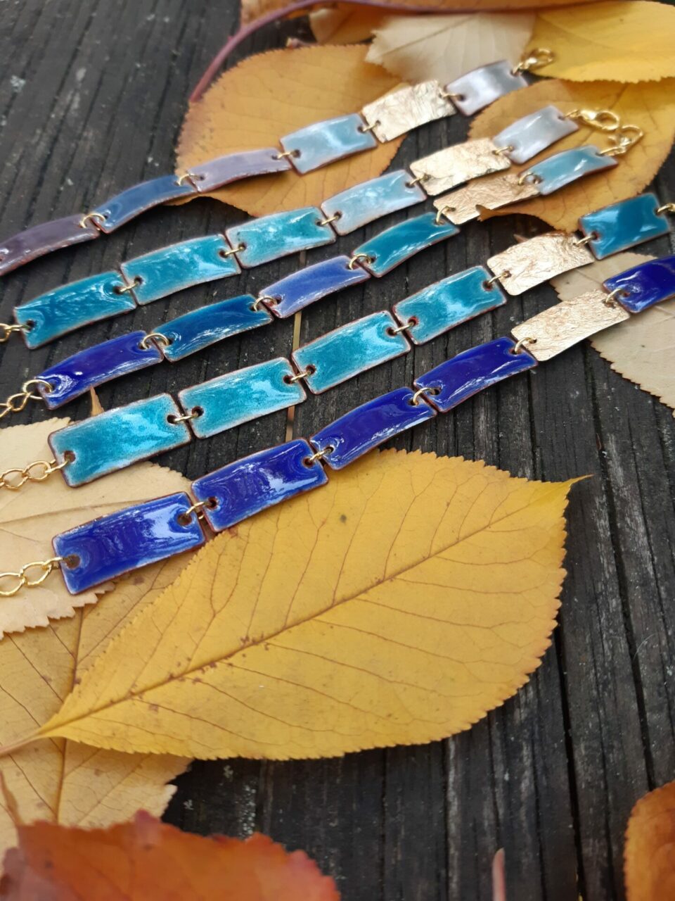 2000- ben kezdtem el a zománc ékszerek készítését. Szeretem ötvözni a hagyományos technikákat a modern irányzatokkal. Régebbi tervezésű ékszereim inkább a klasszikus zománctechnikákkal készültek. Jellemzőek rájuk a virág és az inda motívumok. Később már kissé elrugaszkodva a hagyományoktól, a modern trendeket követve születtek meg a bőrrel kombinált ékszerek. A legújabb kollekcióm pedig olyan kísérleti technikával készült, ahol különböző zománcfajtákat párosítok össze. A más olvadáspontú zománcok teljesen kiszámíthatatlan, izgalmas felületeket hoznak létre.